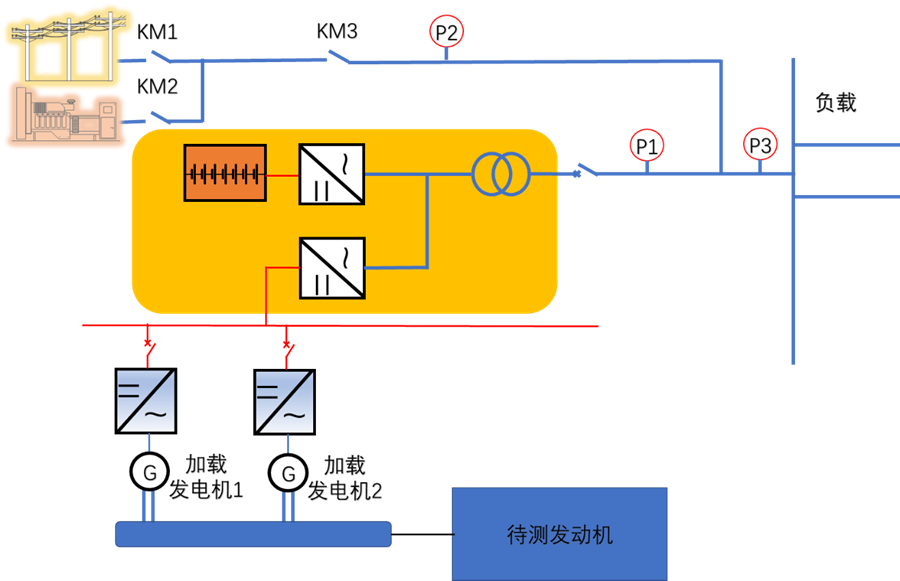 If the engine under test is replaced by unstable power generation systems such as gas-fired power generation, the hybrid power system combined with the energy storage system can convert the unstable power source into a low-carbon power grid that provides stable power supply for loads. Compared with the direct AC-side coupling of unstable power supply systems, this solution is easier to control and has more stable performance.